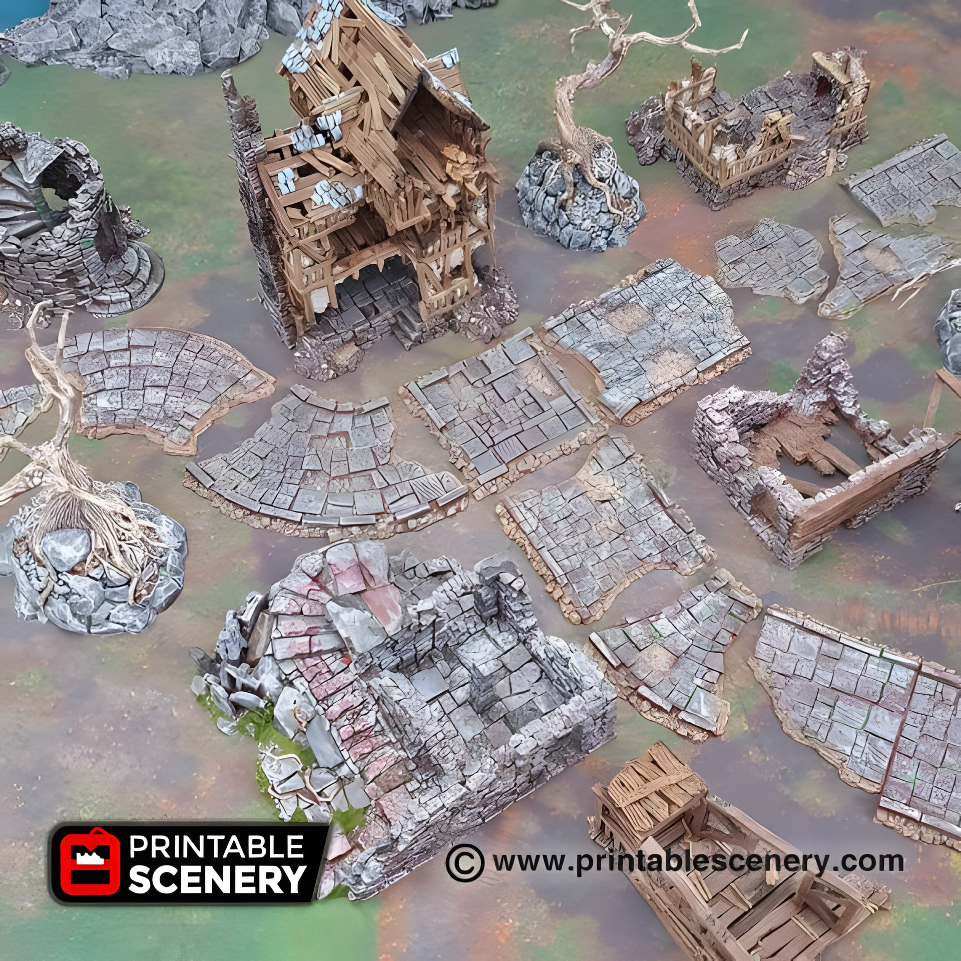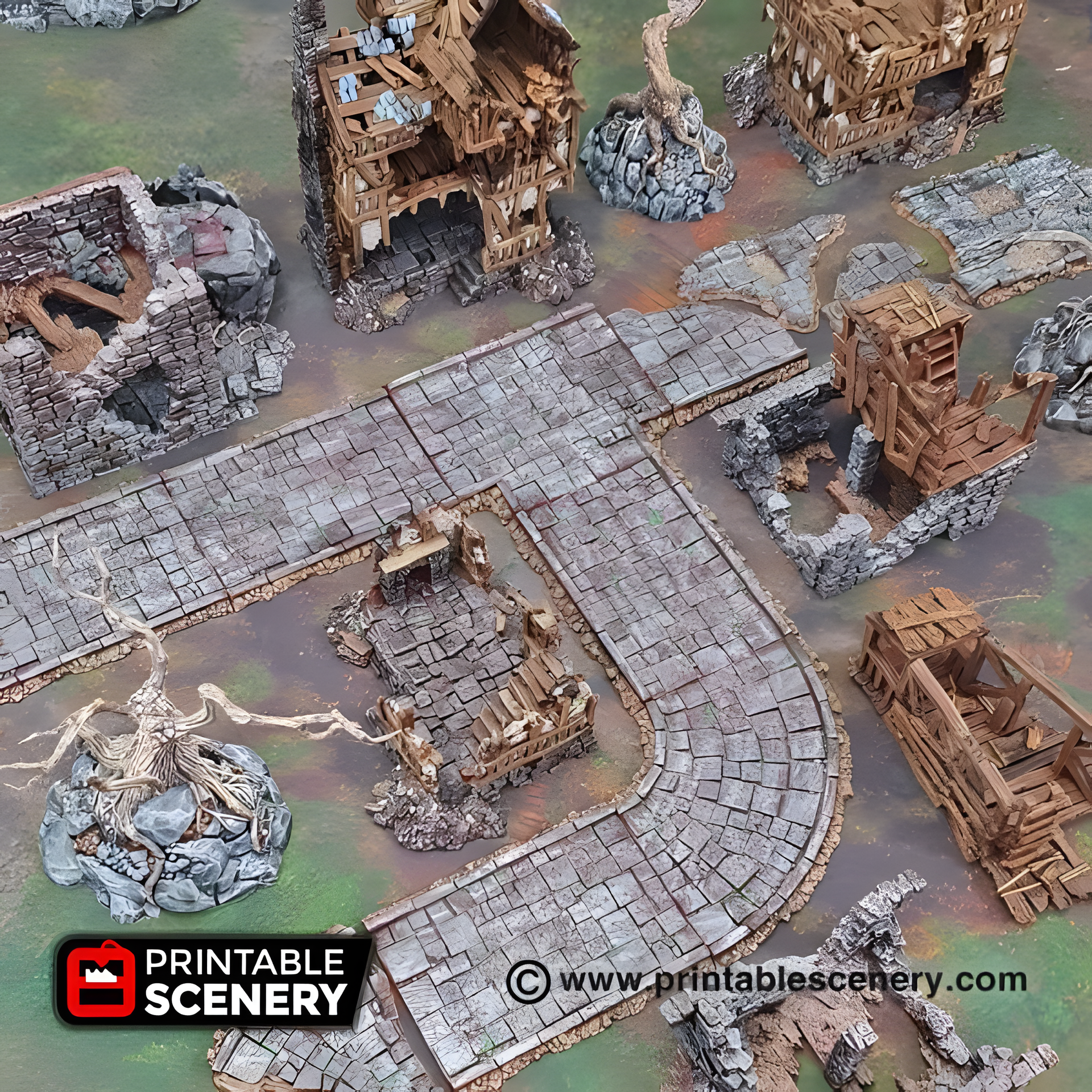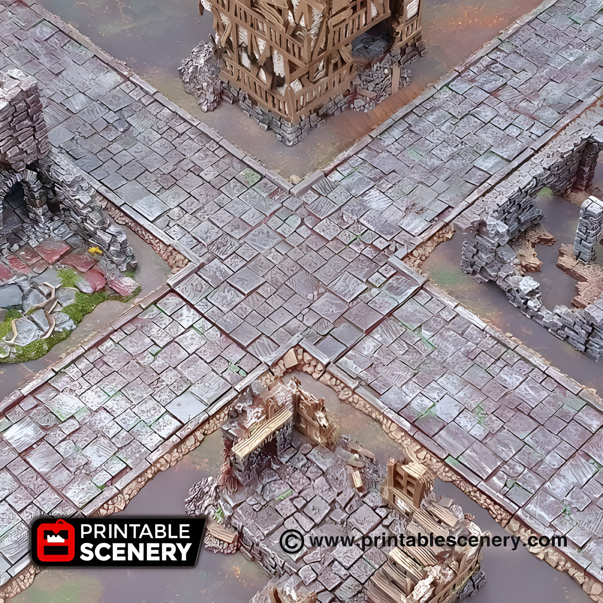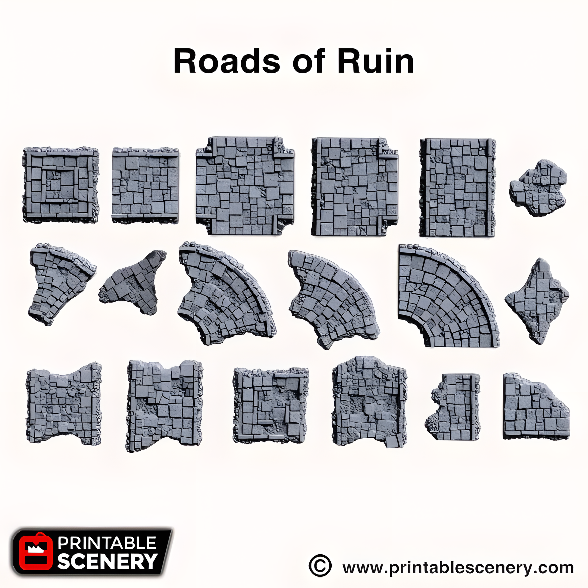 Roads of Ruin, 22 Piece flagstone streets, 15mm, 28mm, 32mm - Printable Scenery