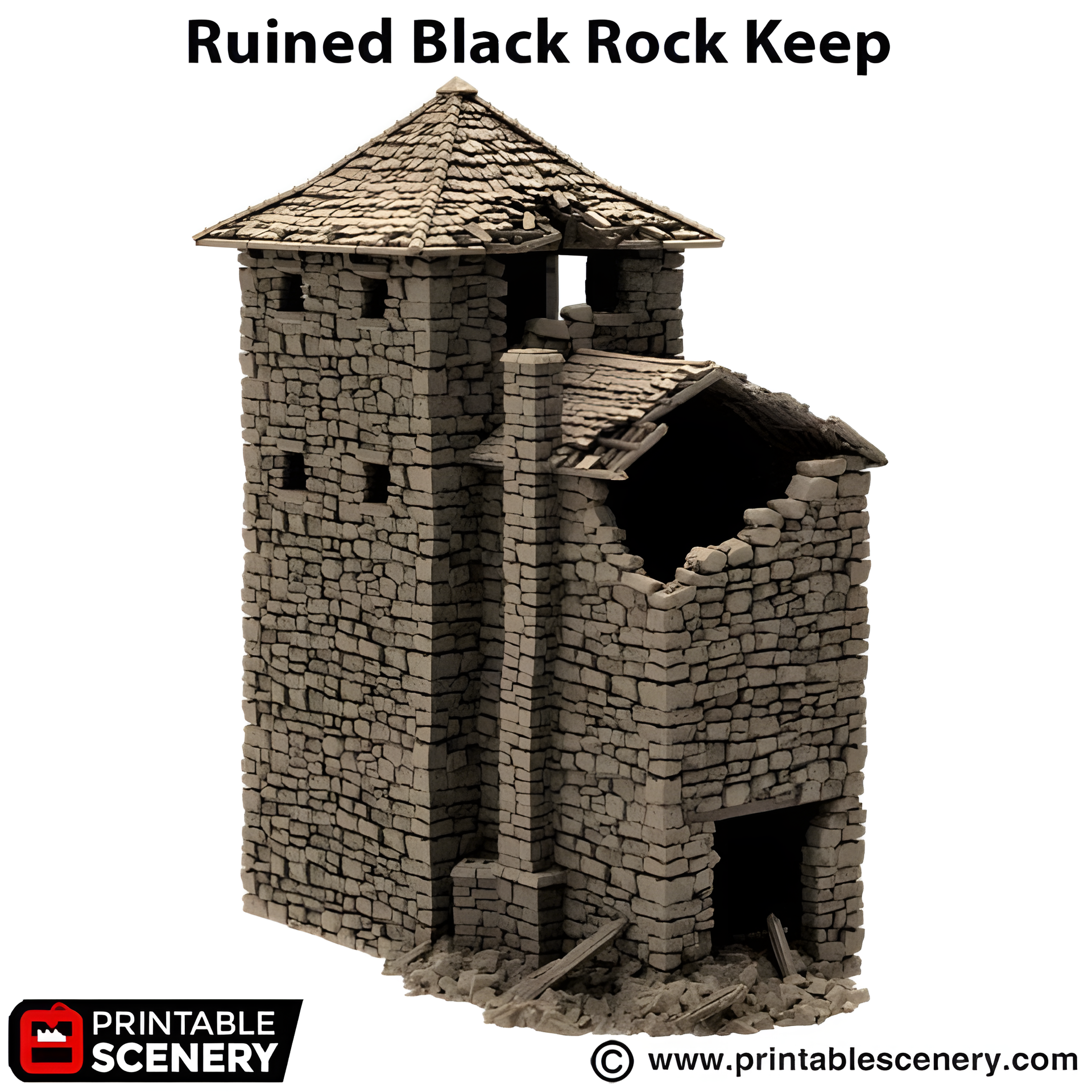 Ruined Black Rock Keep. King and Country, 15mm, 28mm, 32mm - Printable Scenery
